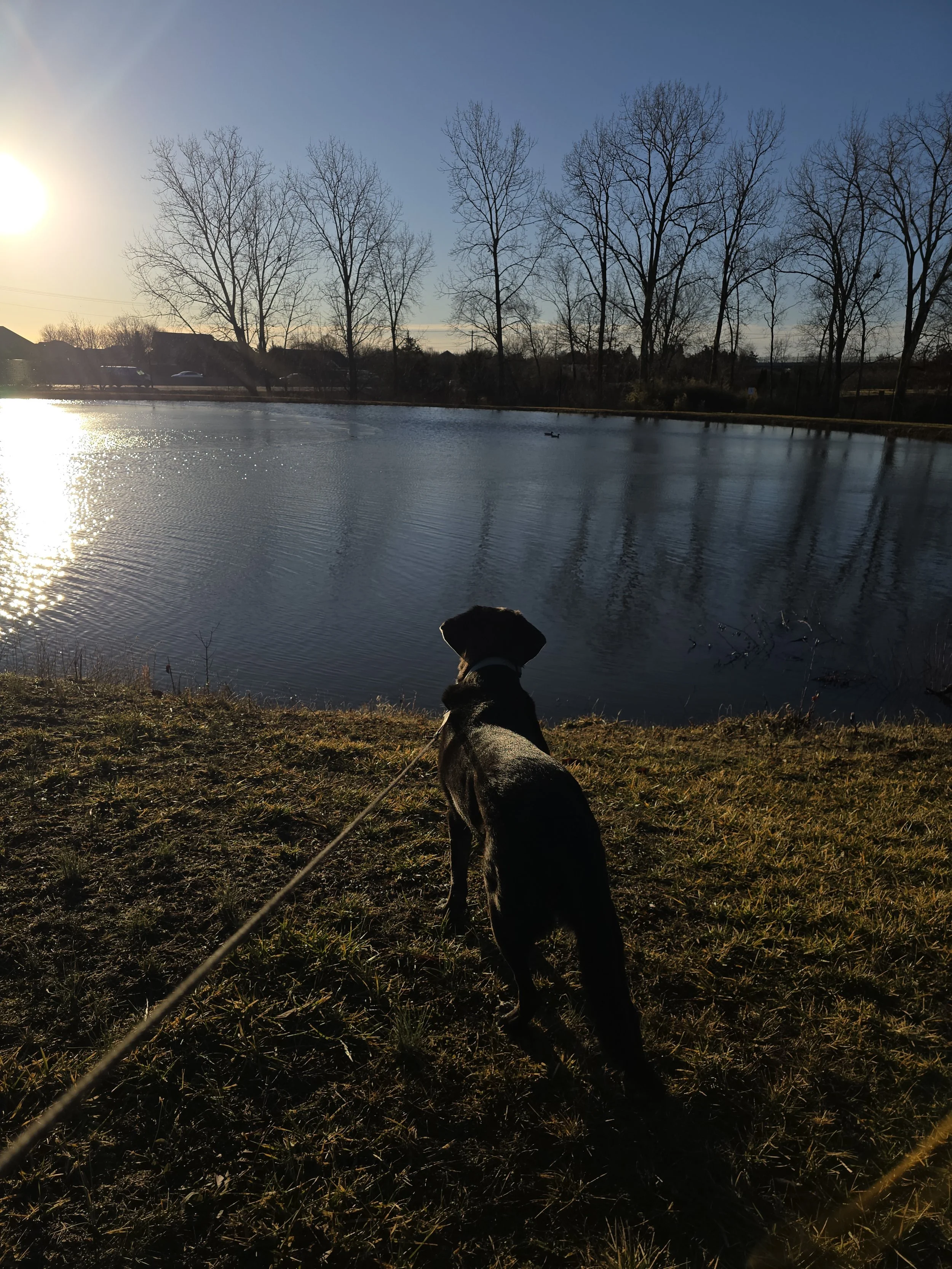 Fenced by 6ft small wire fence connected to 8ft deer fence (4x4 holes and 4x2 on bottom rows) the pond offers running areas as well as swimming. A must visit for any water dog.